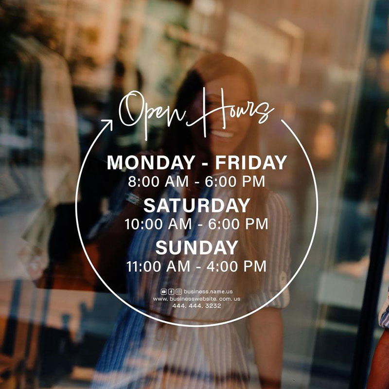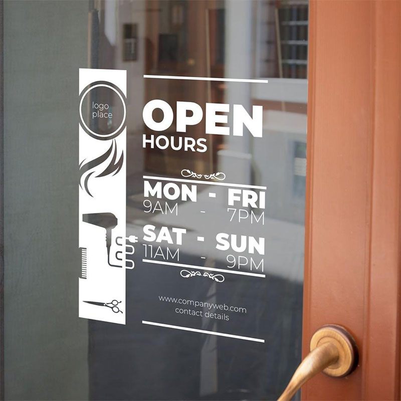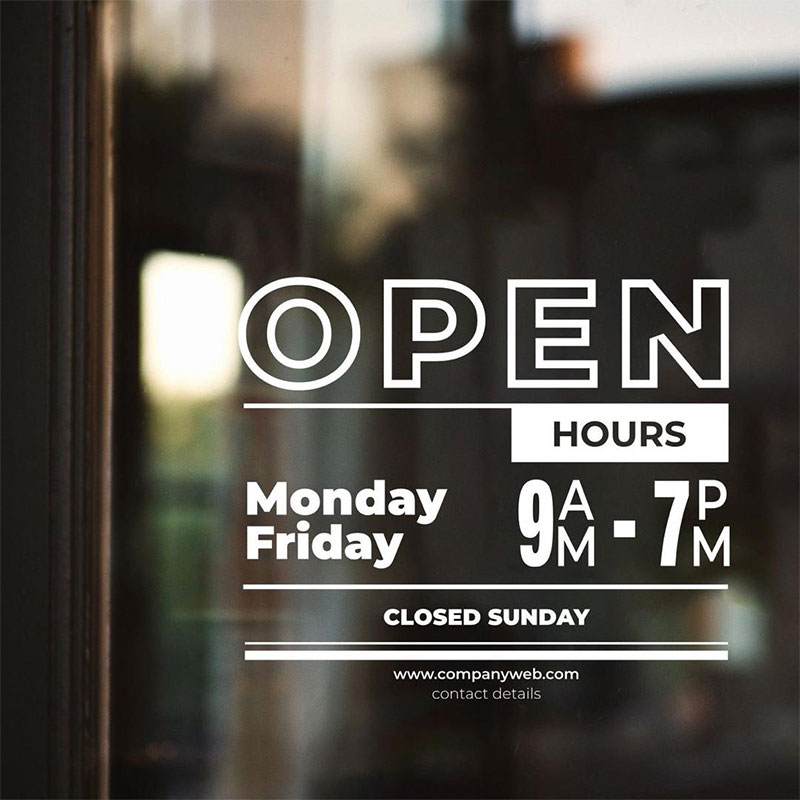استیکر ساعت کاری برش خورده یک انتخاب عالی برای شیشهها، بهویژه شیشه کافهها، رستورانها و فضاهای تجاری است. این استیکر به شما کمک میکند تا ساعتهای کاری خود را بهطور واضح و جذاب نمایش دهید. علاوه بر آن، با طراحی شیک و مدرن، فضای شما را به محیطی حرفهای و زیبا تبدیل میکند.